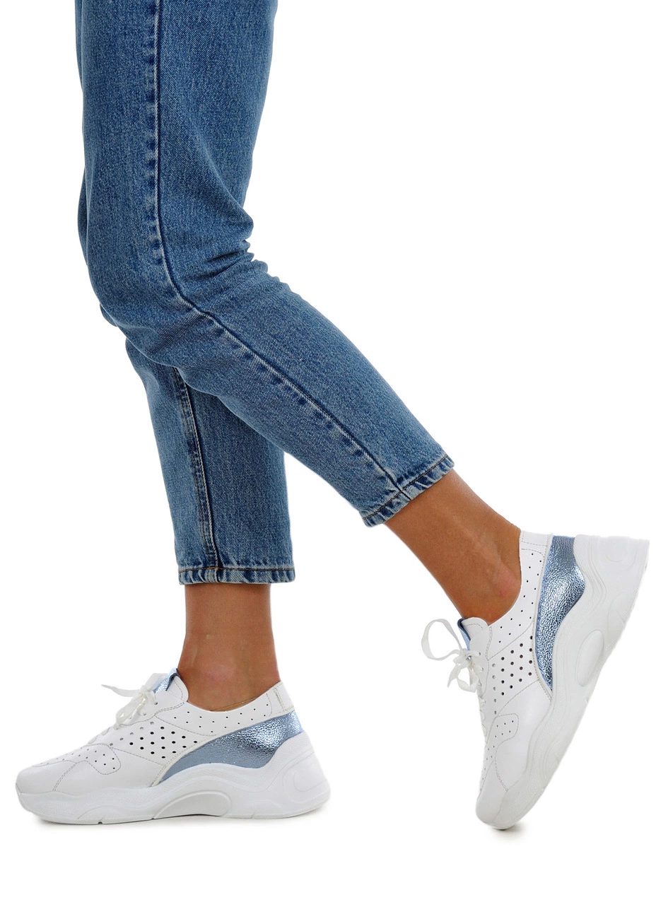 сквозной перфорацией и блестящей голубой кожи. Модель дополнена
