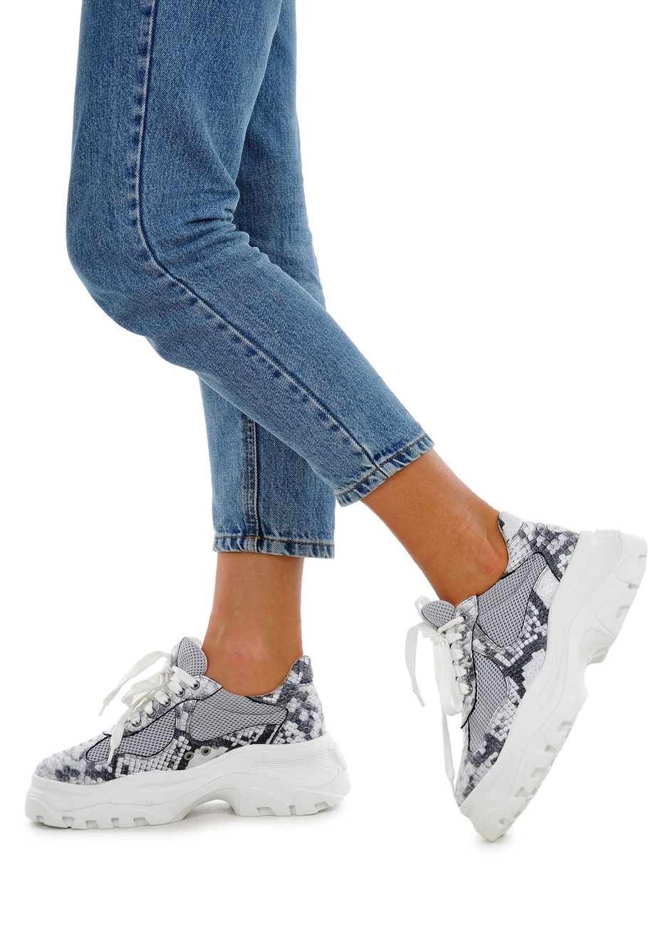 тиснением под рептилию и ткани сетка серого цвета. Модель дополнена