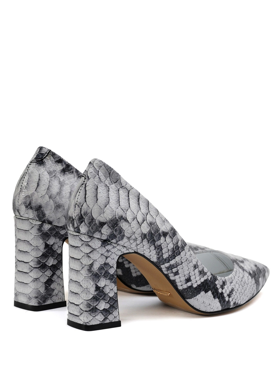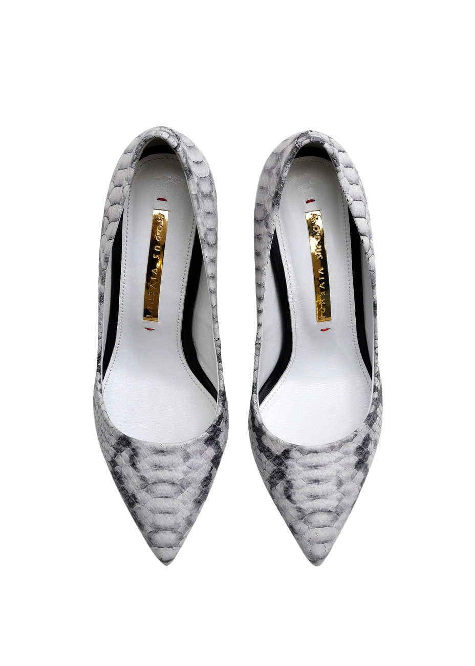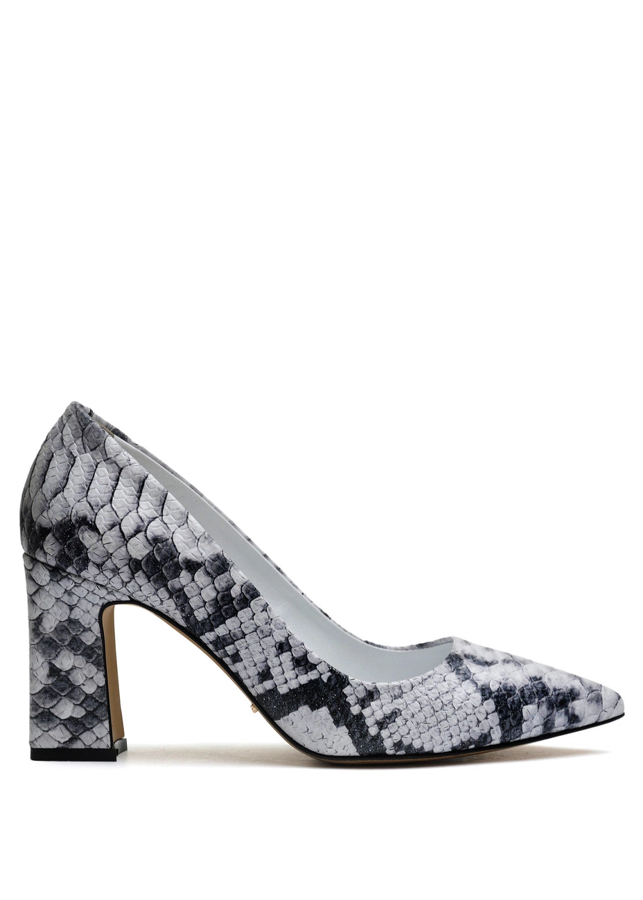 Туфли Modus Vivendi из натуральной черно-белой кожи с тиснением под рептилию. Колодка стандартная. Высота каблука - 7,5 см.