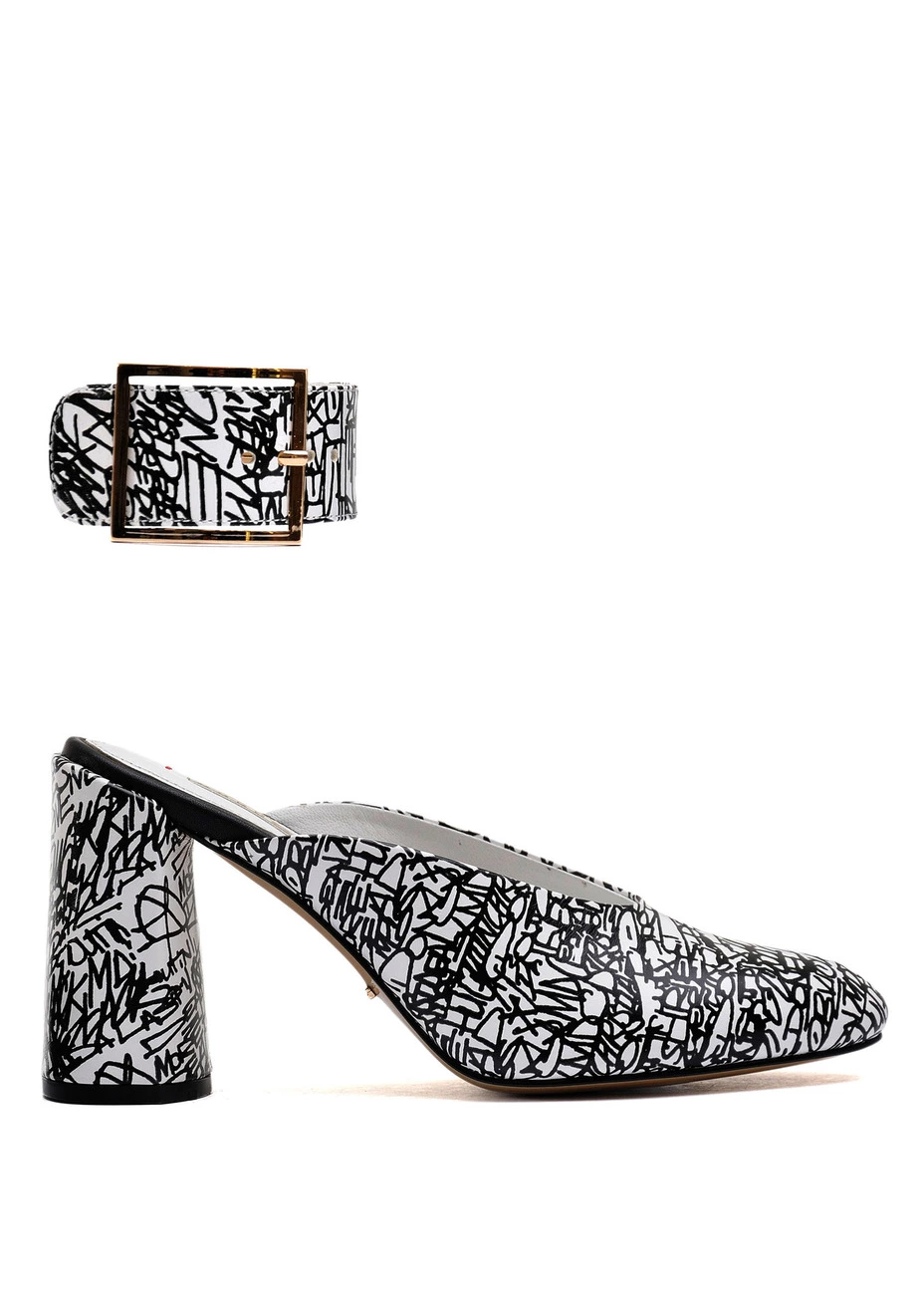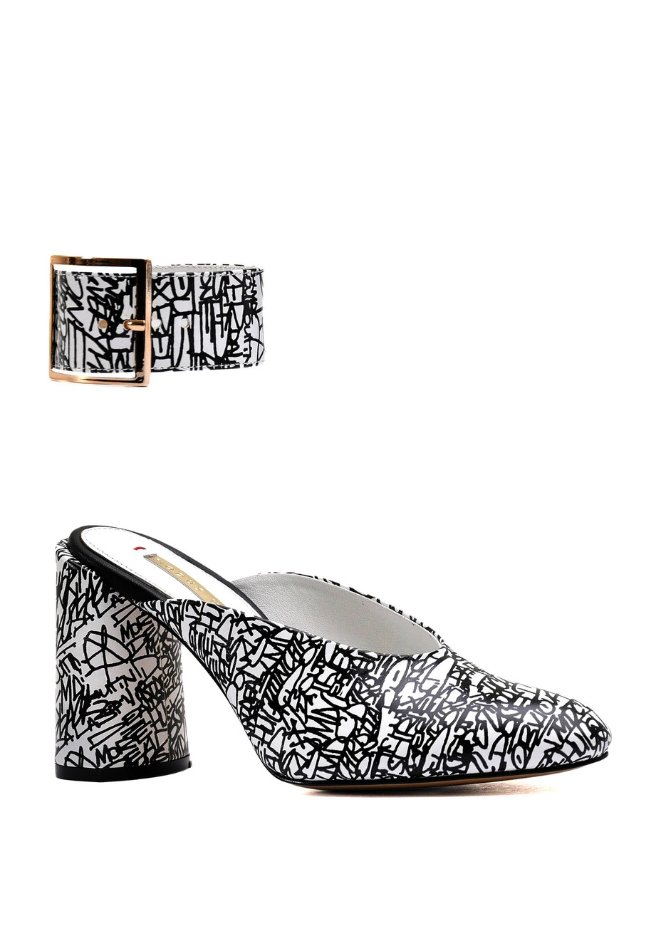 Туфли Modus Vivendi из натуральной кожи с чёрно-белым принтом. Колодка маломерит. Высота каблука - 8,5 см.