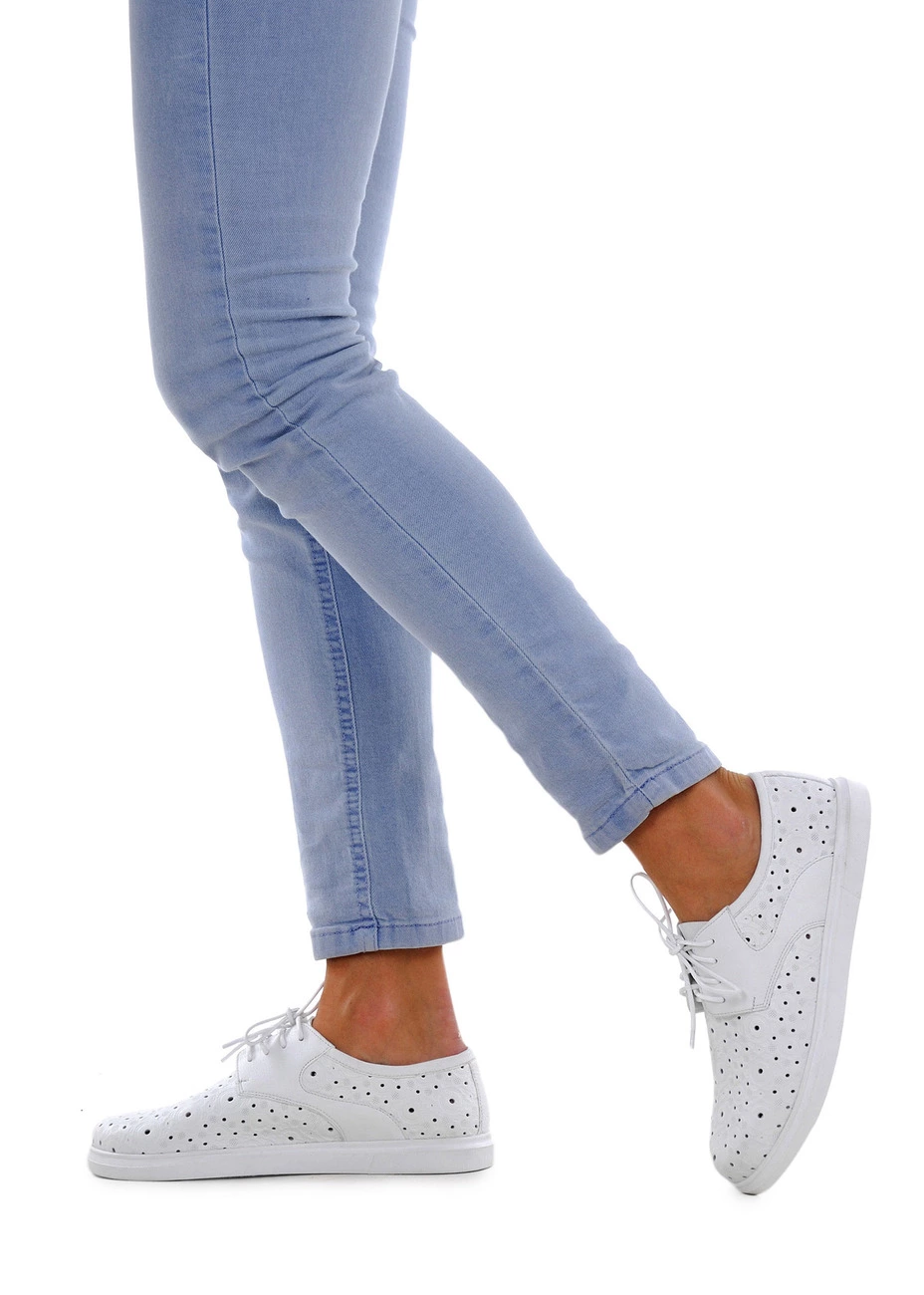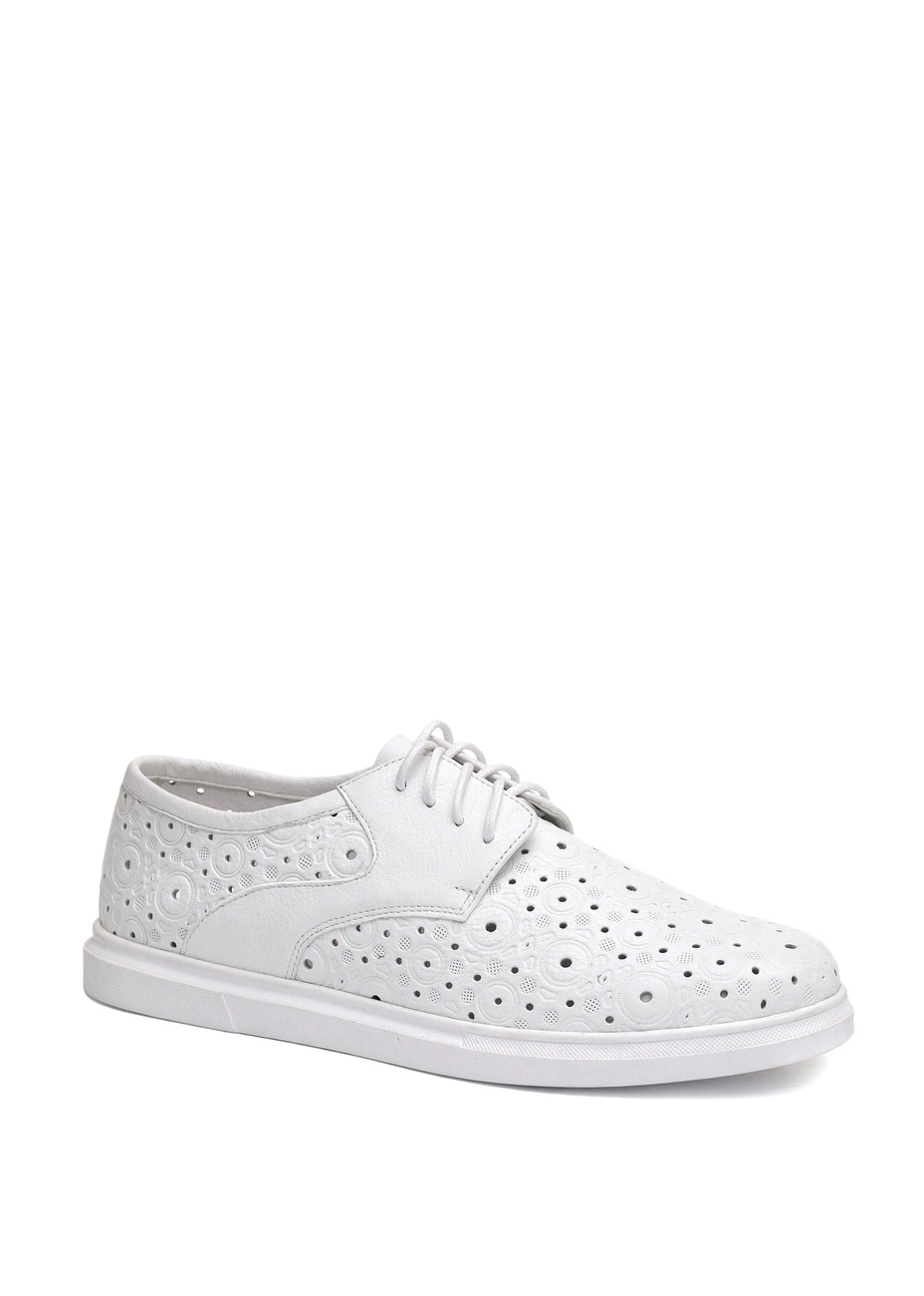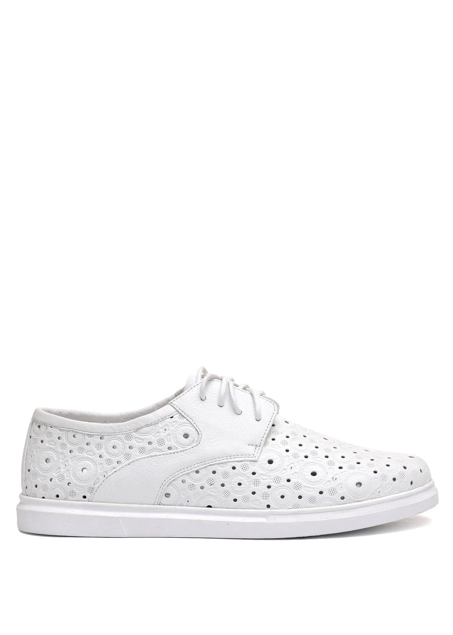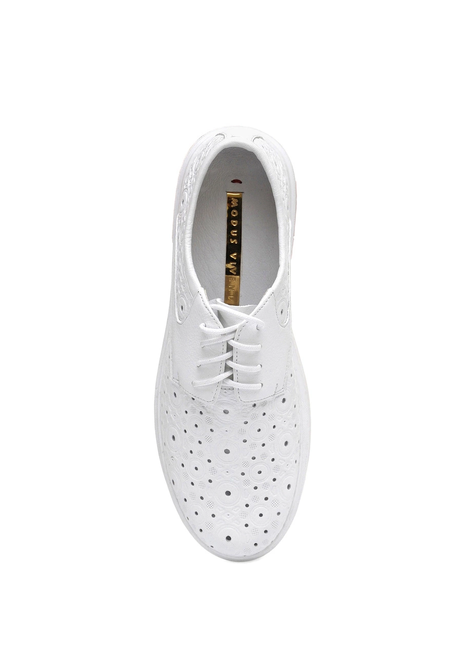 Туфли Modus Vivendi из натуральной перламутровой кожи белого цвета со сквозной перфорацией. Колодка стандартная.